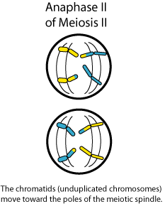 Meiosis ii is the second consecutive division of meiosis which resembles mitosis. Anaphase 2 occurs in haploid cells. During meiosis ii the sister chromatids separate and segregate. For example, take a look the meiosis ii diagram above, which shows the products of meiosis for a cell with 2 n = 4 2n = 4 2 n = 4 chromosomes.