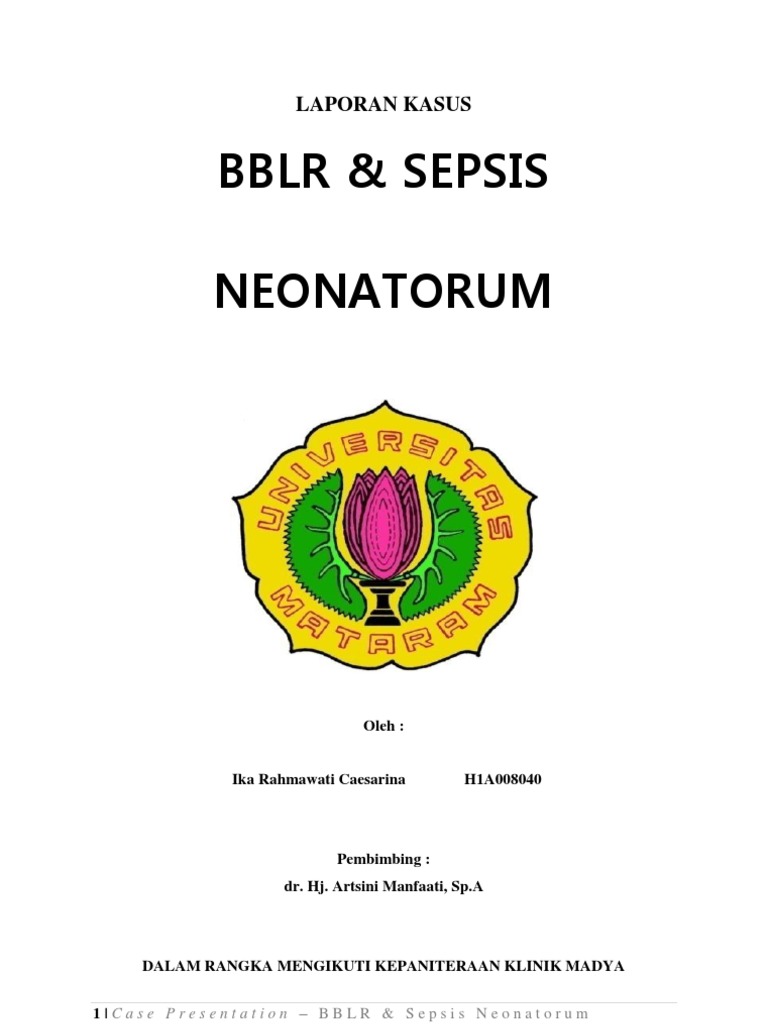 Bab ipendahuluansepsis pada neonatus masih merupakan masalah yang belum terpecahkan dalam pelayanan dan perawatan. Baltimore sepsis neonatorum refers to a constellation of clinical and laboratory findings associated with invasive infection during the first 30. Neonatal sepsis, also known as sepsis neonatorum and neonatal septicemia, is a bacterial blood infection found in newborn infants younger than 3 months 1. The class 2007 b of cebu city medical center college of nursing presents their case for the 2006 grand case presentation.