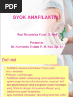 Anafilaksis merupakan reaksi alergi yang parah segera tipe, ditandai dengan secara dramatis meningkatkan sensitivitas organisme untuk reintroduction dari alergen. Syok anafilaktik adalah suatu reaksi alergi yang dapat menyebabkan kehilangan kesadaran atau bahkan kematian. Sistem kekebalan tubuh menghasilkan antibodi yang berguna untuk melawan zat. So please help us by uploading 1 new document or like us to download