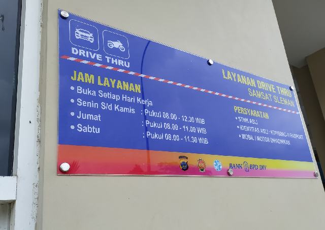 Sleman, kabupaten sleman, daerah istimewa yogyakarta 55514 sleman, special region of yogyakarta, indonesia, 55514. Night drive thru ini untuk melayani masyarakat yang tidak memiliki waktu karena pekerjaan. Sedangkan persyaratan pada pelayanan samsat drive thru sebagai berikut Kemarin saya lihat yang antre drive thru tidak banyak.